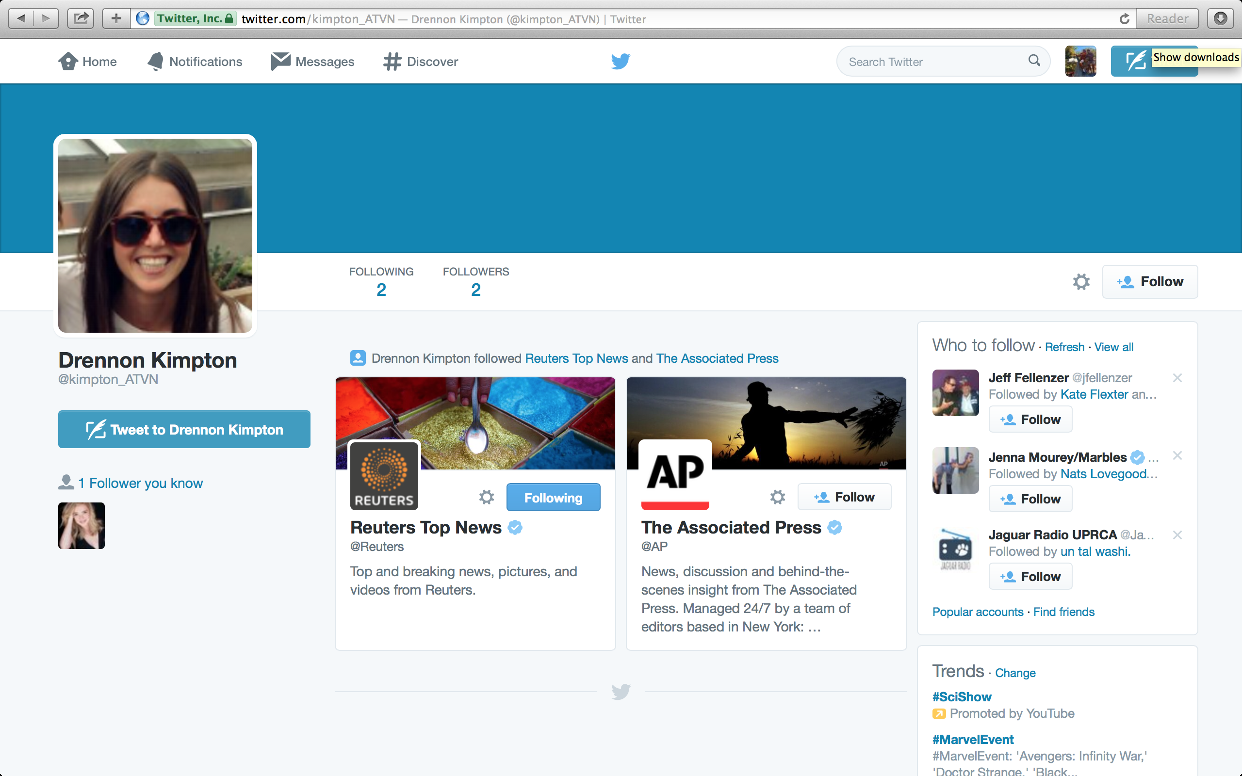 Drennon on her spare time, likes to take pictures and is active on social media. Her Twitter username is @kimpton_ATVN and you also can request to follow her on Instagram under Drennon Kimpton. She also has a Flickr account, where you can see different pictures that she has taken for several projects.